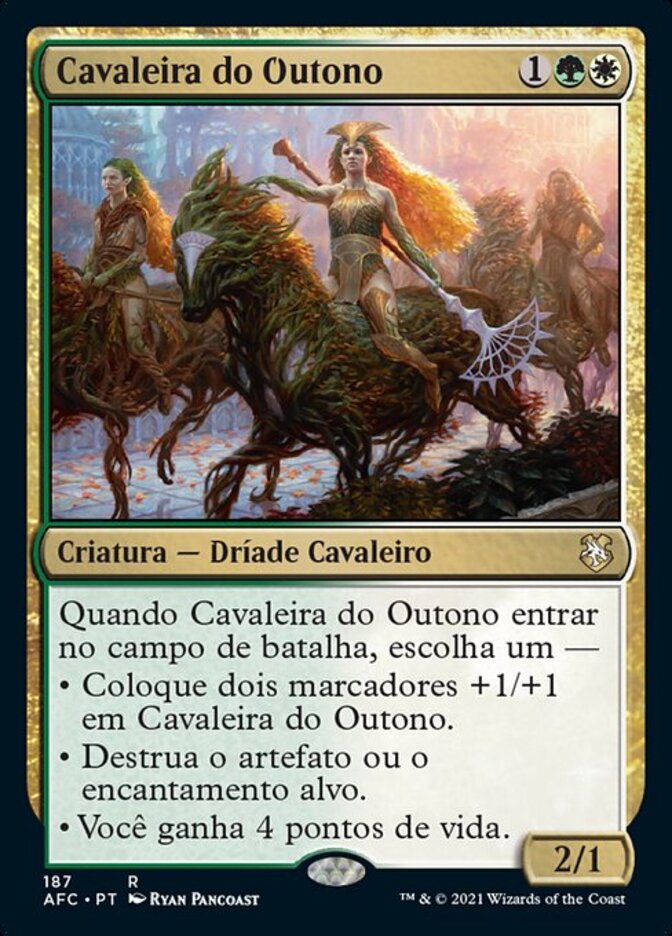 | Rules | When Knight of Autumn enters the battlefield, choose one — • Put two +1/+1 counters on Knight of Autumn. • Destroy target artifact or enchantment. • You gain 4 life. |
