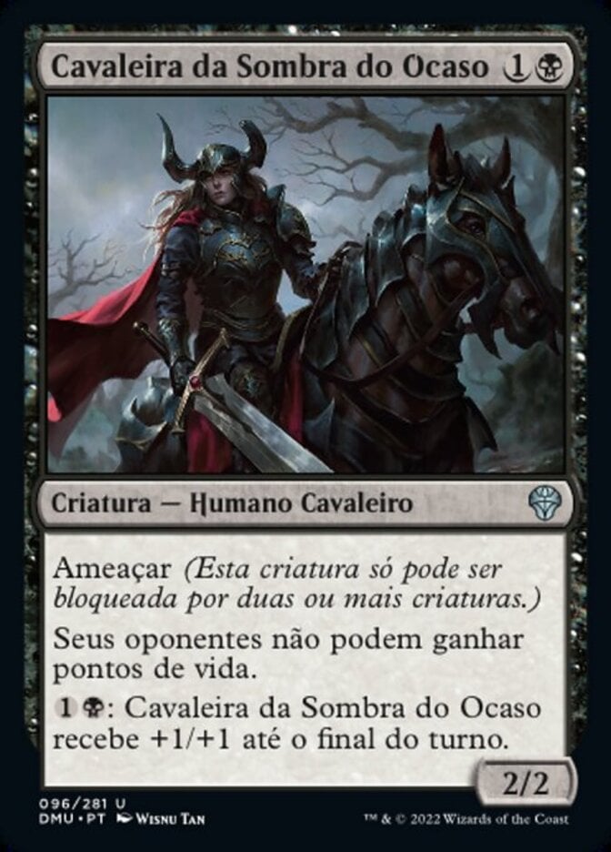 | Rules | Menace (This creature can't be blocked except by two or more creatures.) Your opponents can't gain life. : Knight of Dusk's Shadow gets +1/+1 until end of turn. |