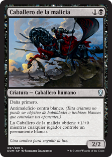 | Rules | First strike Hexproof from white (This creature can't be the target of white spells or abilities your opponents control.) Knight of Malice gets +1/+0 as long as any player controls a white permanent. |