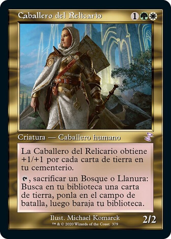 | Rules | Knight of the Reliquary gets +1/+1 for each land card in your graveyard. , Sacrifice a Forest or Plains: Search your library for a land card, put it onto the battlefield, then shuffle. |