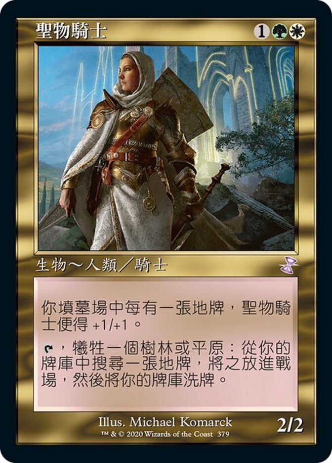 | Rules | Knight of the Reliquary gets +1/+1 for each land card in your graveyard. , Sacrifice a Forest or Plains: Search your library for a land card, put it onto the battlefield, then shuffle. |