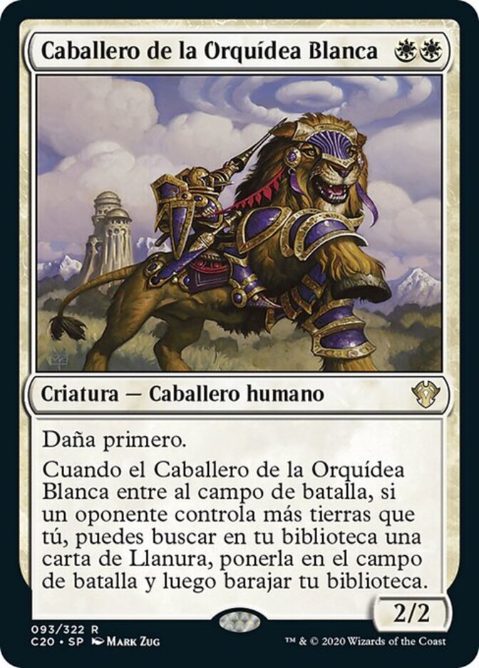 | Rules | First strike When Knight of the White Orchid enters the battlefield, if an opponent controls more lands than you, you may search your library for a Plains card, put it onto the battlefield, then shuffle. |