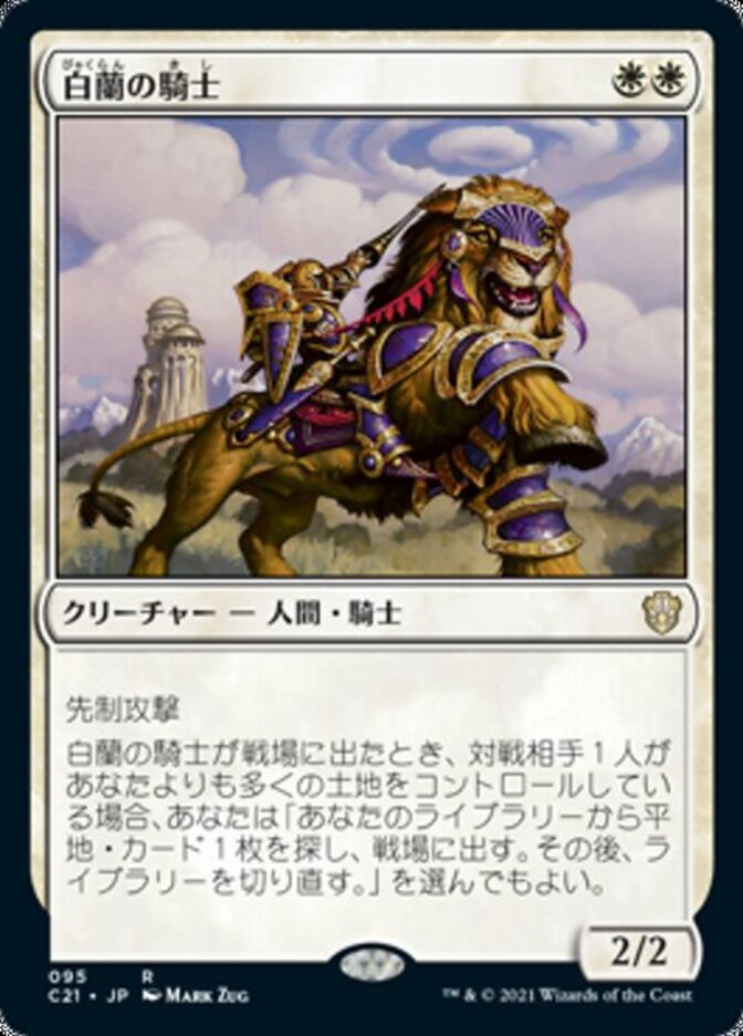 | Rules | First strike When Knight of the White Orchid enters the battlefield, if an opponent controls more lands than you, you may search your library for a Plains card, put it onto the battlefield, then shuffle. |