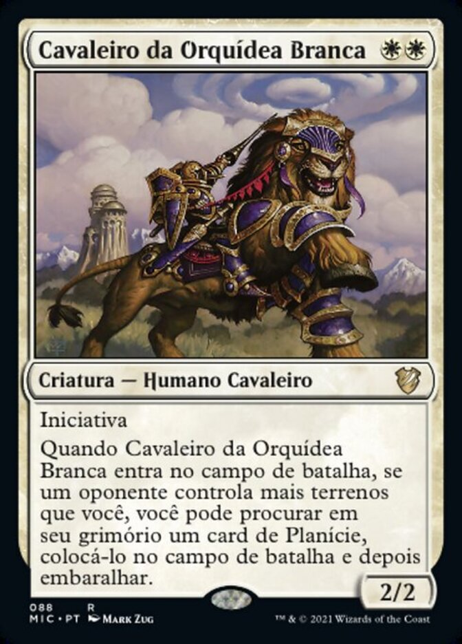 | Rules | First strike When Knight of the White Orchid enters the battlefield, if an opponent controls more lands than you, you may search your library for a Plains card, put it onto the battlefield, then shuffle. |