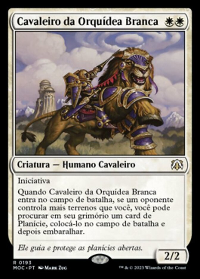 | Rules | First strike When Knight of the White Orchid enters the battlefield, if an opponent controls more lands than you, you may search your library for a Plains card, put it onto the battlefield, then shuffle. |