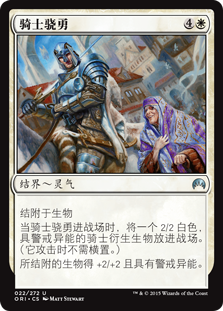 | Rules | Enchant creature When Knightly Valor enters the battlefield, create a 2/2 white Knight creature token with vigilance. (Attacking doesn't cause it to tap.) Enchanted creature gets +2/+2 and has vigilance. |