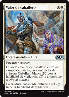 | Rules | Enchant creature When Knightly Valor enters the battlefield, create a 2/2 white Knight creature token with vigilance. (Attacking doesn't cause it to tap.) Enchanted creature gets +2/+2 and has vigilance. |