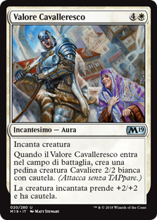| Rules | Enchant creature When Knightly Valor enters the battlefield, create a 2/2 white Knight creature token with vigilance. (Attacking doesn't cause it to tap.) Enchanted creature gets +2/+2 and has vigilance. |