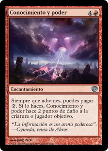 | Rules | Whenever you scry, you may pay . If you do, Knowledge and Power deals 2 damage to any target. |