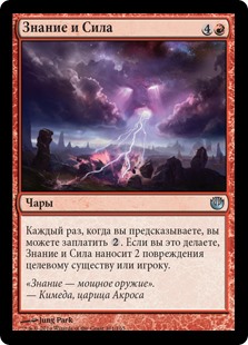 | Rules | Whenever you scry, you may pay . If you do, Knowledge and Power deals 2 damage to any target. |