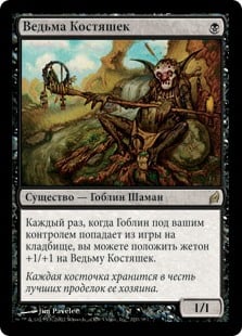 | Rules | Whenever a Goblin you control is put into a graveyard from the battlefield, you may put a +1/+1 counter on Knucklebone Witch. |