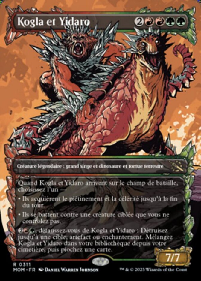 | Rules | When Kogla and Yidaro enters the battlefield, choose one — • It gains trample and haste until end of turn. • It fights target creature you don't control. , Discard Kogla and Yidaro: Destroy up to one target artifact or enchantment. Shuffle Kogla and Yidaro into your library from your graveyard, then draw a card. |