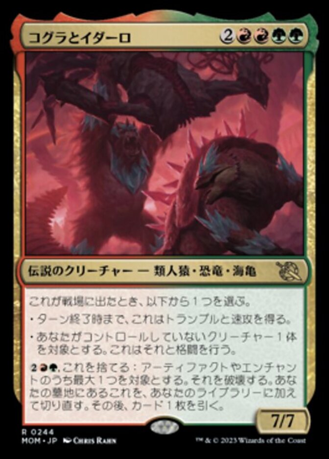 | Rules | When Kogla and Yidaro enters the battlefield, choose one — • It gains trample and haste until end of turn. • It fights target creature you don't control. , Discard Kogla and Yidaro: Destroy up to one target artifact or enchantment. Shuffle Kogla and Yidaro into your library from your graveyard, then draw a card. |