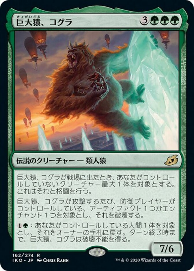 | Rules | When Kogla, the Titan Ape enters the battlefield, it fights up to one target creature you don't control. Whenever Kogla attacks, destroy target artifact or enchantment defending player controls. : Return target Human you control to its owner's hand. Kogla gains indestructible until end of turn. |