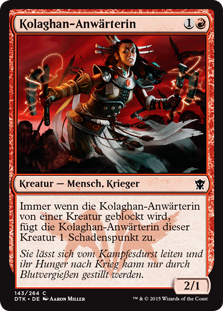| Rules | Whenever Kolaghan Aspirant becomes blocked by a creature, Kolaghan Aspirant deals 1 damage to that creature. |