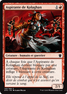 | Rules | Whenever Kolaghan Aspirant becomes blocked by a creature, Kolaghan Aspirant deals 1 damage to that creature. |
