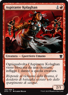 | Rules | Whenever Kolaghan Aspirant becomes blocked by a creature, Kolaghan Aspirant deals 1 damage to that creature. |
