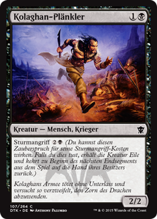 Languages Kolaghan Skirmisher 寇安甘族偵衛 Kolaghan-Plänkler Assaillant de Kolaghan Esploratore Kolaghan コラガンの散兵 콜라간 척후병 Escaramuçador de Kolaghan Колаганский Застрельщик 寇安甘族侦卫 Escaramuzador de Kólagan