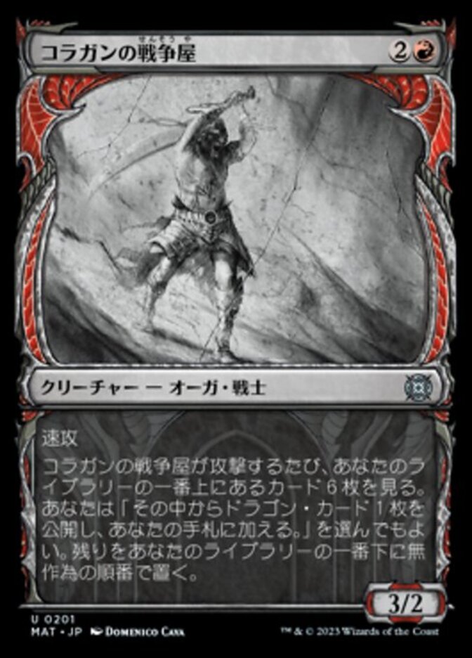 | Rules | Haste Whenever Kolaghan Warmonger attacks, look at the top six cards of your library. You may reveal a Dragon card from among them and put it into your hand. Put the rest on the bottom of your library in a random order. |
