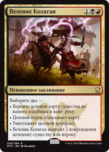 | Rules | Choose two — • Return target creature card from your graveyard to your hand. • Target player discards a card. • Destroy target artifact. • Kolaghan's Command deals 2 damage to any target. |