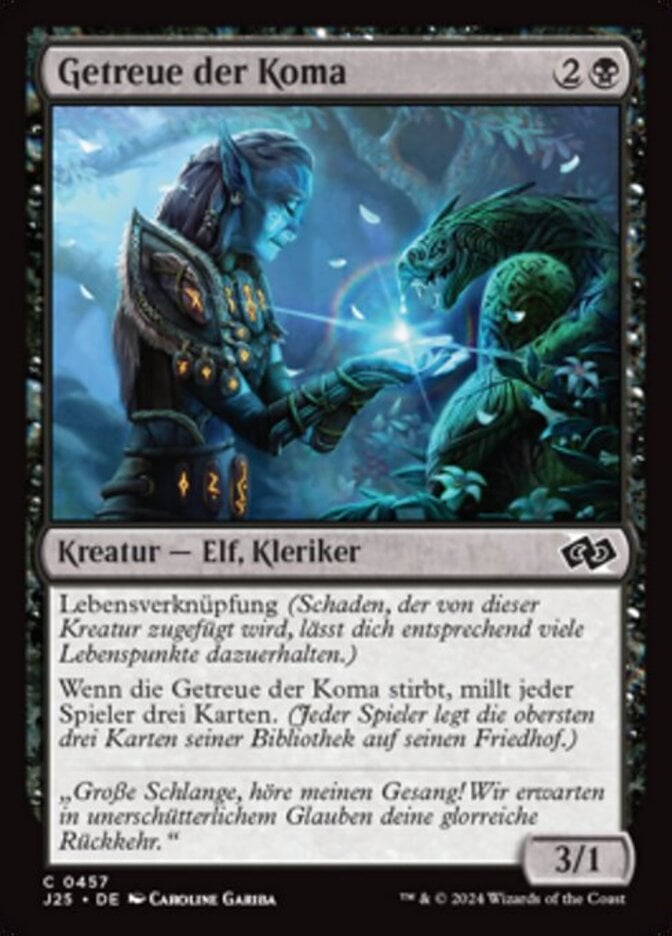 | Rules | Lifelink When Koma's Faithful dies, each player mills three cards. (To mill a card, a player puts the top card of their library into their graveyard.) |