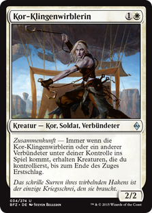 | Rules | Rally — Whenever Kor Bladewhirl or another Ally enters the battlefield under your control, creatures you control gain first strike until end of turn. |