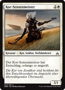 | Rules | Kor Scythemaster has first strike as long as it's attacking. |