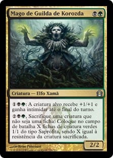 | Rules | : Target creature gets +1/+1 and gains intimidate until end of turn. (It can't be blocked except by artifact creatures and/or creatures that share a color with it.) , Sacrifice a nontoken creature: Create X 1/1 green Saproling creature tokens, where X is the sacrificed creature's toughness. |