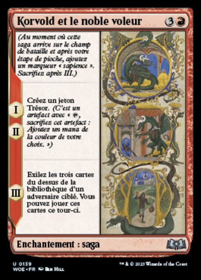 | Rules | (As this Saga enters and after your draw step, add a lore counter. Sacrifice after III.) I, II — Create a Treasure token. (It's an artifact with ", Sacrifice this artifact: Add one mana of any color.") III — Exile the top three cards of target opponent's library. You may play those cards this turn. |