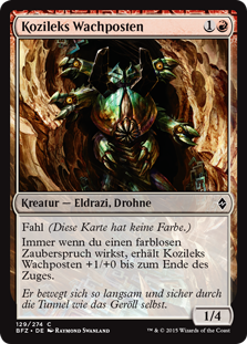 | Rules | Devoid (This card has no color.) Whenever you cast a colorless spell, Kozilek's Sentinel gets +1/+0 until end of turn. |