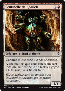 | Rules | Devoid (This card has no color.) Whenever you cast a colorless spell, Kozilek's Sentinel gets +1/+0 until end of turn. |