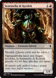| Rules | Devoid (This card has no color.) Whenever you cast a colorless spell, Kozilek's Sentinel gets +1/+0 until end of turn. |