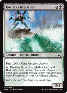 | Rules | Devoid (This card has no color.) : Kozilek's Shrieker gets +1/+0 and gains menace until end of turn. (It can't be blocked except by two or more creatures. represents colorless mana.) |