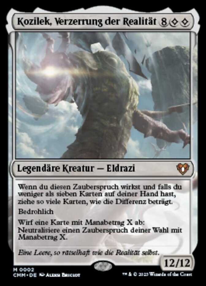 | Rules | When you cast this spell, if you have fewer than seven cards in hand, draw cards equal to the difference. Menace Discard a card with mana value X: Counter target spell with mana value X. |