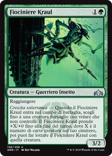 | Rules | Reach Undergrowth — When Kraul Harpooner enters the battlefield, choose up to one target creature with flying you don't control. Kraul Harpooner gets +X/+0 until end of turn, where X is the number of creature cards in your graveyard, then you may have Kraul Harpooner fight that creature. |