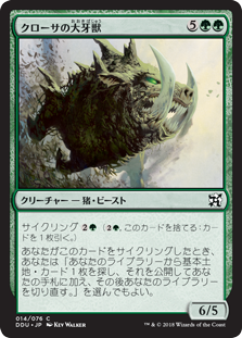 | Rules | Cycling (, Discard this card: Draw a card.) When you cycle Krosan Tusker, you may search your library for a basic land card, reveal that card, put it into your hand, then shuffle. (Do this before you draw.) |