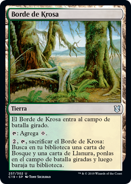 | Rules | Krosan Verge enters the battlefield tapped. : Add . , , Sacrifice Krosan Verge: Search your library for a Forest card and a Plains card, put them onto the battlefield tapped, then shuffle. |