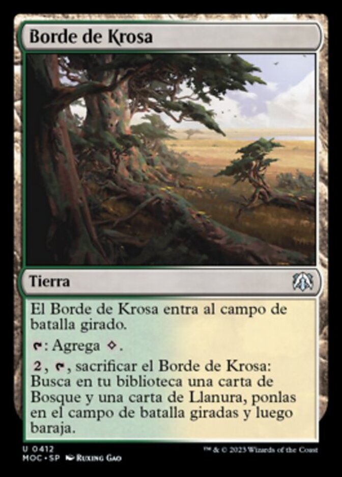 | Rules | Krosan Verge enters the battlefield tapped. : Add . , , Sacrifice Krosan Verge: Search your library for a Forest card and a Plains card, put them onto the battlefield tapped, then shuffle. |