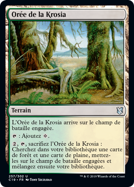 | Rules | Krosan Verge enters the battlefield tapped. : Add . , , Sacrifice Krosan Verge: Search your library for a Forest card and a Plains card, put them onto the battlefield tapped, then shuffle. |