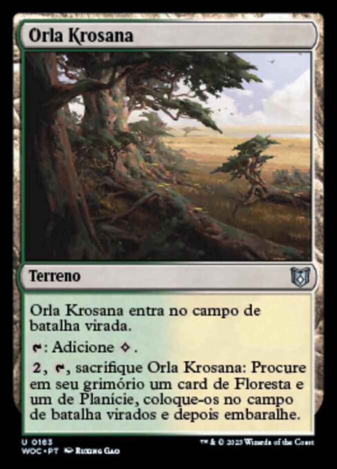 | Rules | Krosan Verge enters the battlefield tapped. : Add . , , Sacrifice Krosan Verge: Search your library for a Forest card and a Plains card, put them onto the battlefield tapped, then shuffle. |