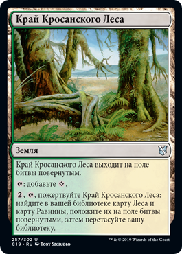 | Rules | Krosan Verge enters the battlefield tapped. : Add . , , Sacrifice Krosan Verge: Search your library for a Forest card and a Plains card, put them onto the battlefield tapped, then shuffle. |
