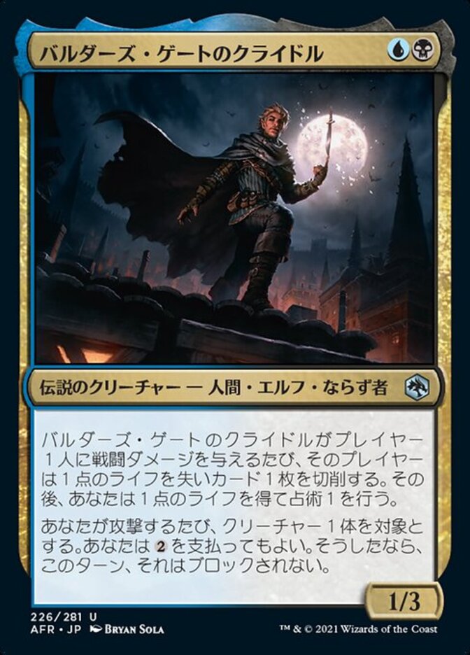 | Rules | Whenever Krydle of Baldur's Gate deals combat damage to a player, that player loses 1 life and mills a card, then you gain 1 life and scry 1. Whenever you attack, you may pay . If you do, target creature can't be blocked this turn. |