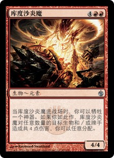 | Rules | When Kuldotha Flamefiend enters the battlefield, you may sacrifice an artifact. If you do, Kuldotha Flamefiend deals 4 damage divided as you choose among any number of targets. |