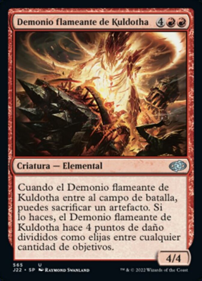 | Rules | When Kuldotha Flamefiend enters the battlefield, you may sacrifice an artifact. If you do, Kuldotha Flamefiend deals 4 damage divided as you choose among any number of targets. |