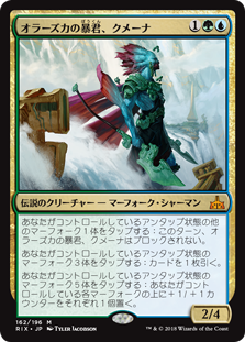 | Rules | Tap another untapped Merfolk you control: Kumena, Tyrant of Orazca can't be blocked this turn. Tap three untapped Merfolk you control: Draw a card. Tap five untapped Merfolk you control: Put a +1/+1 counter on each Merfolk you control. |