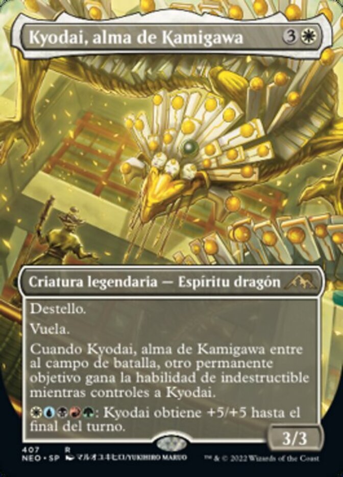 | Rules | Flash Flying When Kyodai, Soul of Kamigawa enters the battlefield, another target permanent gains indestructible for as long as you control Kyodai. : Kyodai gets +5/+5 until end of turn. |