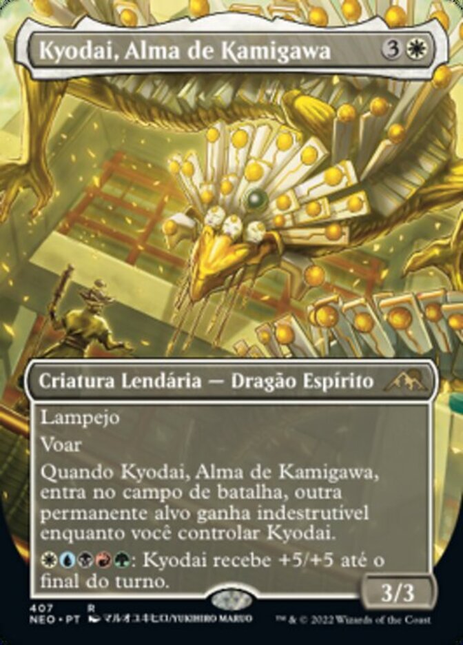 | Rules | Flash Flying When Kyodai, Soul of Kamigawa enters the battlefield, another target permanent gains indestructible for as long as you control Kyodai. : Kyodai gets +5/+5 until end of turn. |