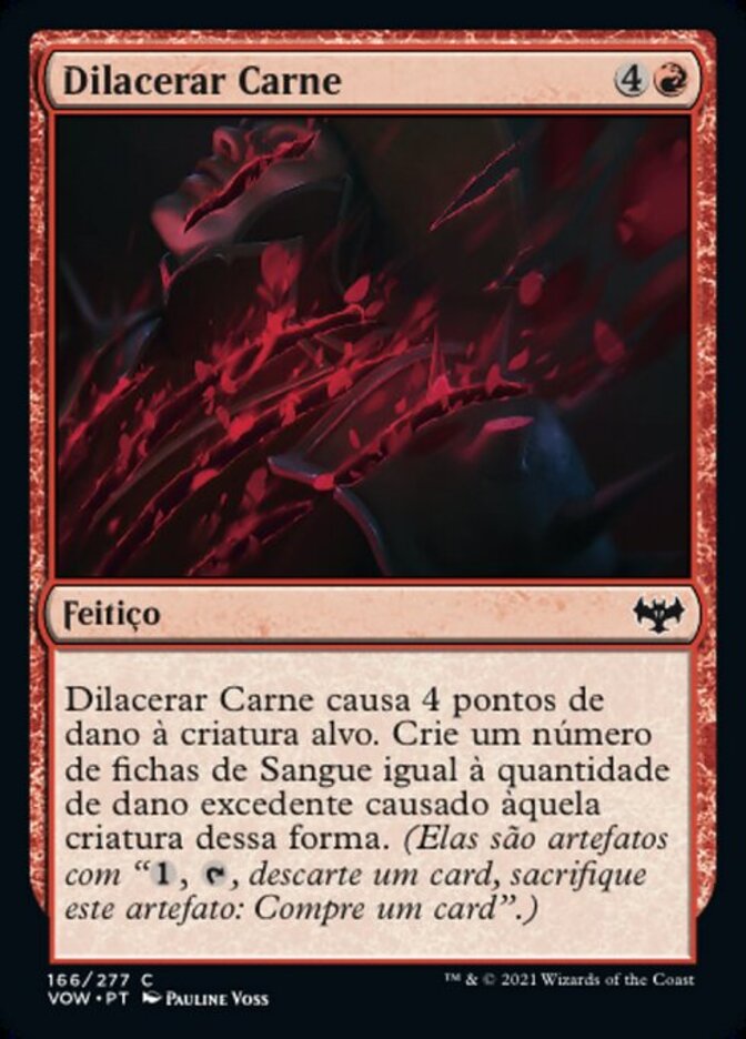 | Rules | Lacerate Flesh deals 4 damage to target creature. Create a number of Blood tokens equal to the amount of excess damage dealt to that creature this way. (They're artifacts with ", , Discard a card, Sacrifice this artifact: Draw a card.") |