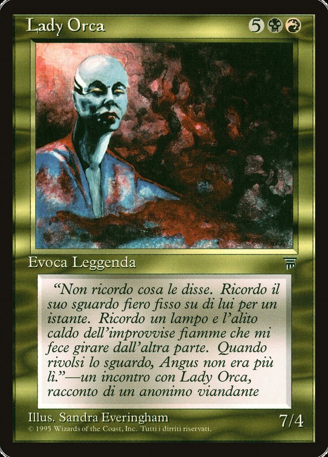 | Flavor | "I do not remember what he said to her. I remember her fiery eyes, fixed upon him for an instant. I remember a flash, and the hot breath of sudden flames made me turn away. When I looked again, Angus was gone."A Wayfarer, on meeting Lady Orca |