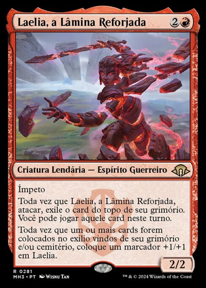 | Rules | Haste Whenever Laelia, the Blade Reforged attacks, exile the top card of your library. You may play that card this turn. Whenever one or more cards are put into exile from your library and/or your graveyard, put a +1/+1 counter on Laelia. |